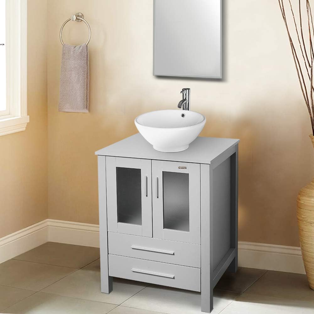 24 Grey Bathroom Vanity Tempered Glass Vessel Sink Combo Style Sink 1 5 Gpm Faucet Oil Rubbed Bronze Bathroom Vanity Top With Sink Bowl 20 Inch Deep 30 Water Saving Faucet U Eway B02ga04 Amazon In Furniture