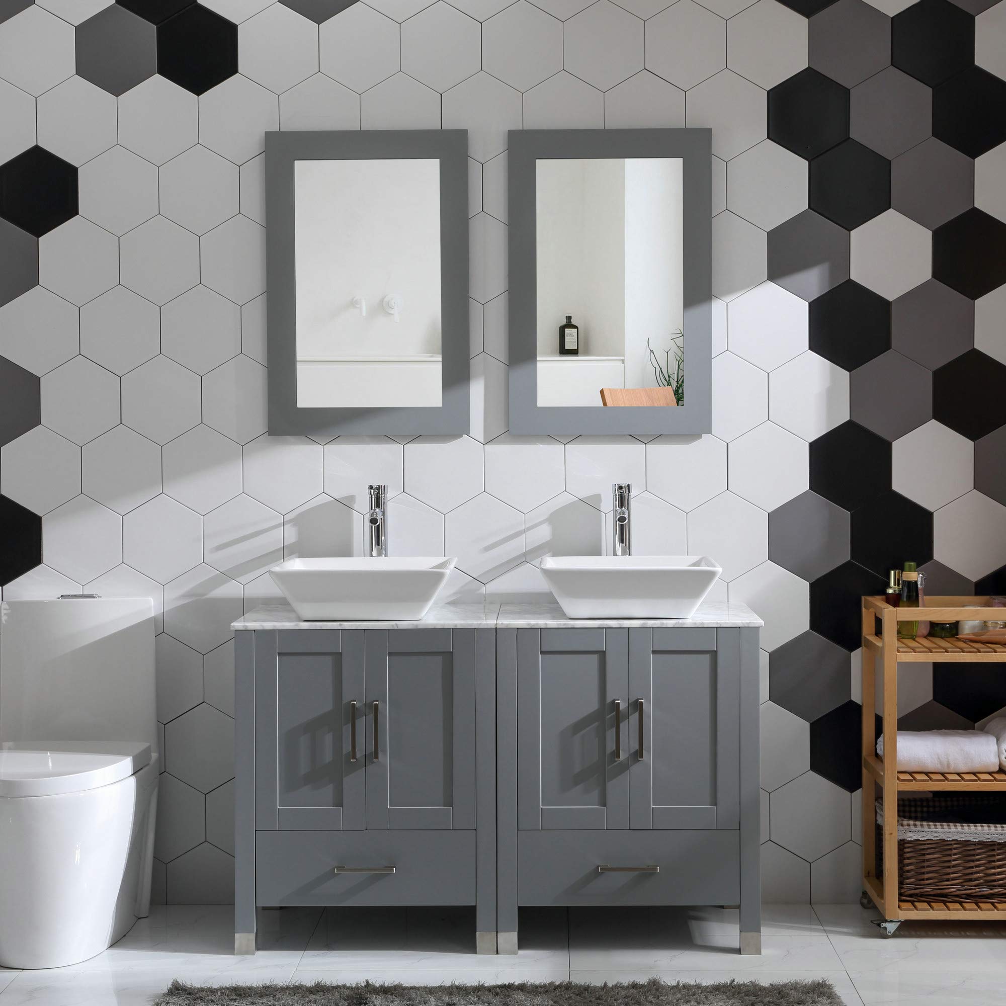 48 Double Sink Bathroom Vanity Cabinet Combo Glass Marble Top Grey Paint Wood W Faucet Mirror Drain Set Solid Wood Marble Top Buy Online In India At Desertcart In Productid 177057097