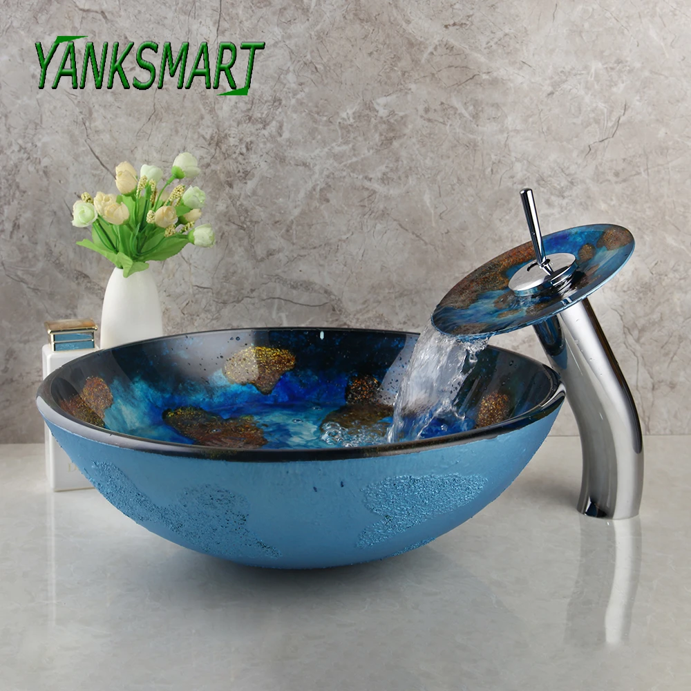 Yanksmart Bathroom Lavatory Basin Sink Tempered Round Glass Washbasin Faucet Combo Set Mixer Counter Top Tap With Pop Up Drain Bathroom Sinks Aliexpress