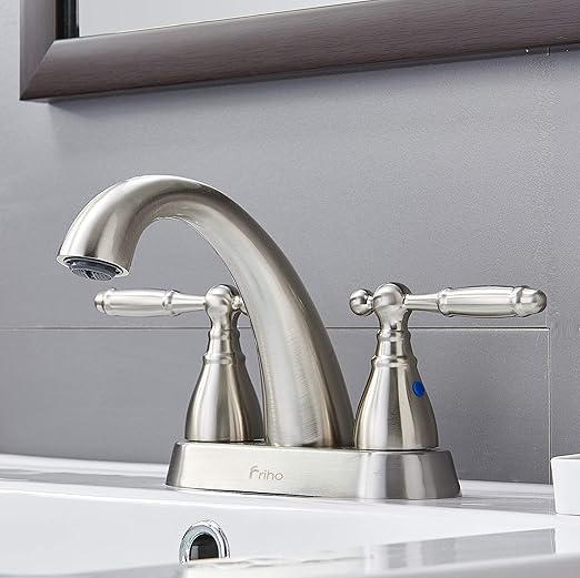 Friho Lavatory Vanity 2 Handle Brushed Nickel Bathroom Faucet Lead Free Stainless Steel Bathroom Sink Faucets With Pop Up Drain Stopper And Water Hoses Amazon In Home Improvement
