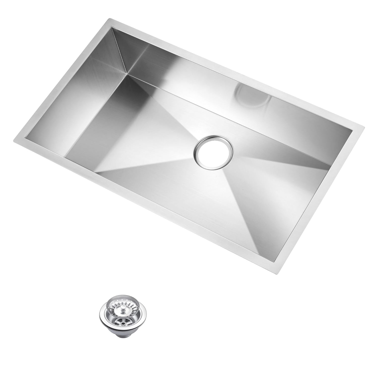 Water Creation Sss U 3319a 33 X 19 Zero Radius Single Bowl Stainless Steel Hand Made Undermount Kitchen Sink With Drain And Strainer Premium Scratch Resistant Satin Stainless Steel Amazon In Home Improvement