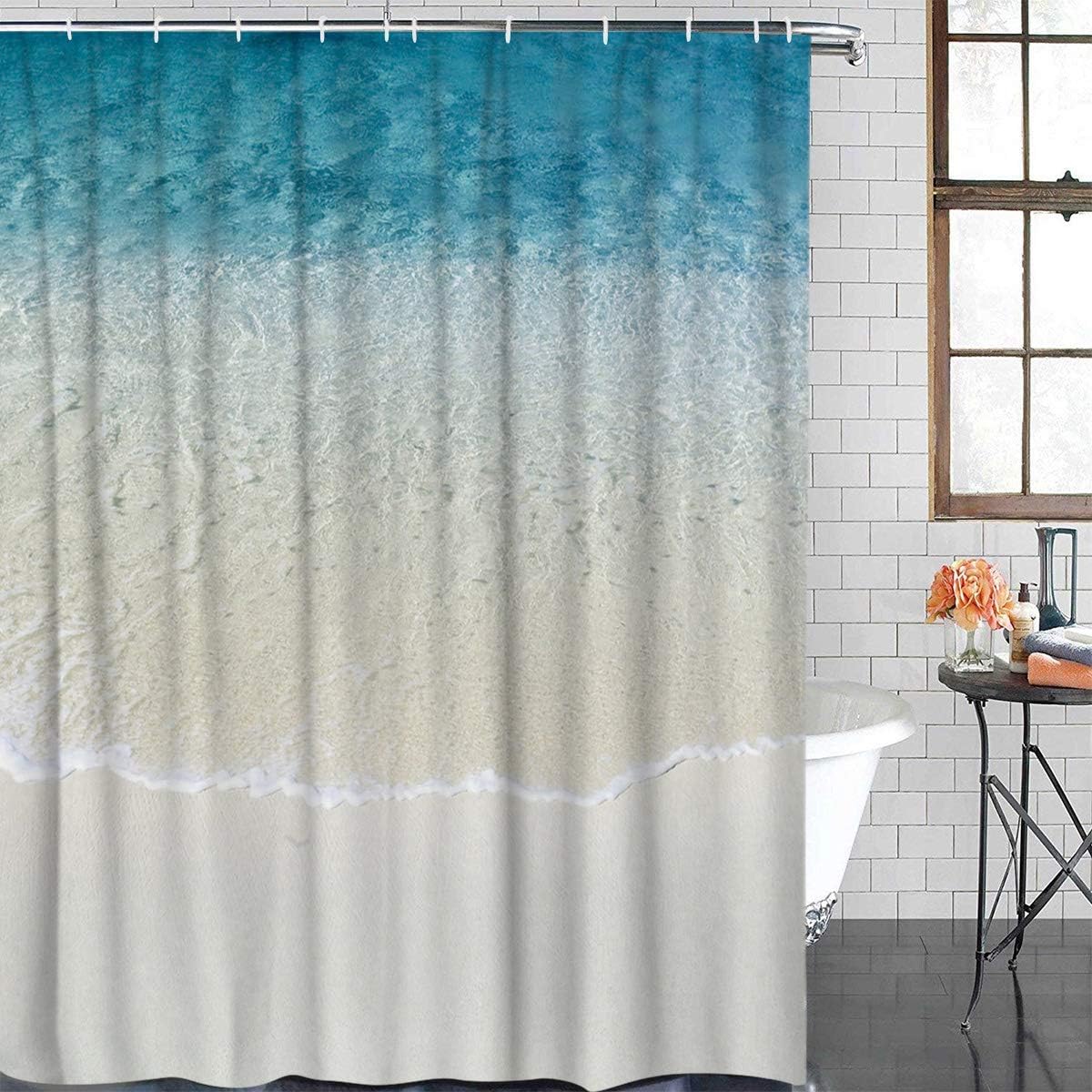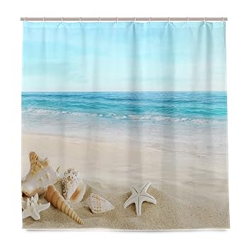 Uhuse Beach Shower Curtain Seashell Starfish Sand Blue Sky Beach Theme Shower Curtain Waterproof Polyester Fabric Shower Curtain Set With Hooks Bathroom Decor 72 X 72 Amazon In Home Kitchen