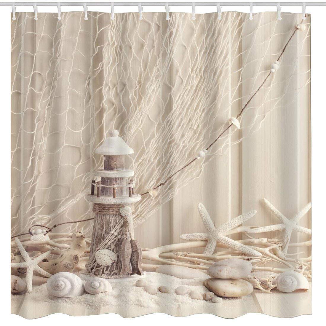 Buy Broshan Beige Fabric Shower Curtains Modern Fishing Net Seashell Marine Beach Theme Bath Curtain Nautical Fabric Bathroom Accessories Set With Hooks Online In Indonesia B078mylrwj