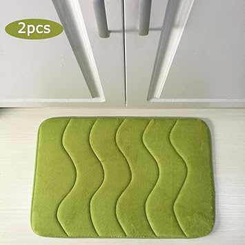 Buy Wave Memory Foam Bath Mat For Bathroom Set Of 2 Machine Washable Quick Dry Non Slip Soft Bath Rugs Green 16 X 24 Inch Lime Green Online At Low Prices In India