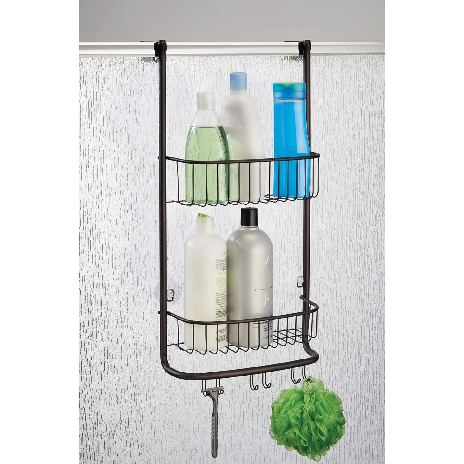 Amazon Com Idesign Metalo Over The Door Hanging Shower Organizer 22 7 X 10 5 X 8 2 Satin Health Household