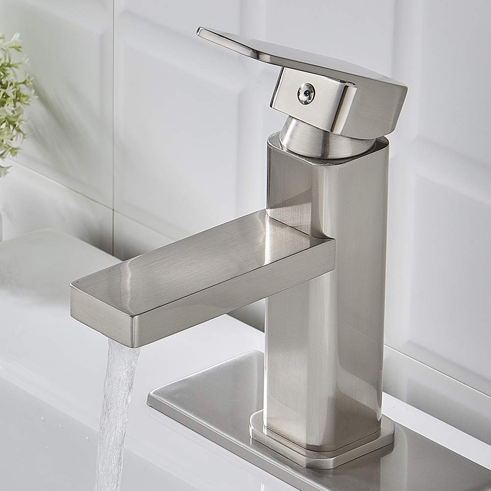 Voton Brushed Nickel Bathroom Faucet Single Hole Modern Square Single Handle Bathroom Sink Washbasin Vanity Sink Faucet With Deck Buy Online In India At Desertcart In Productid 97436211