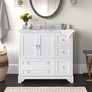Madison 36 Inch Bathroom Vanity Carrara White Includes Italian Carrara Marble Top White Cabinet With Soft Close Drawers Doors And Rectangular Ceramic Sink Amazon In Furniture