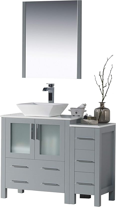 Amazon Com Blossom Sydney 42 Inches Single Bathroom Vanity Vessel Sink And Side Cabinet With Mirror All Wood Metal Grey 001 42 15 1616v Sc Tools Home Improvement