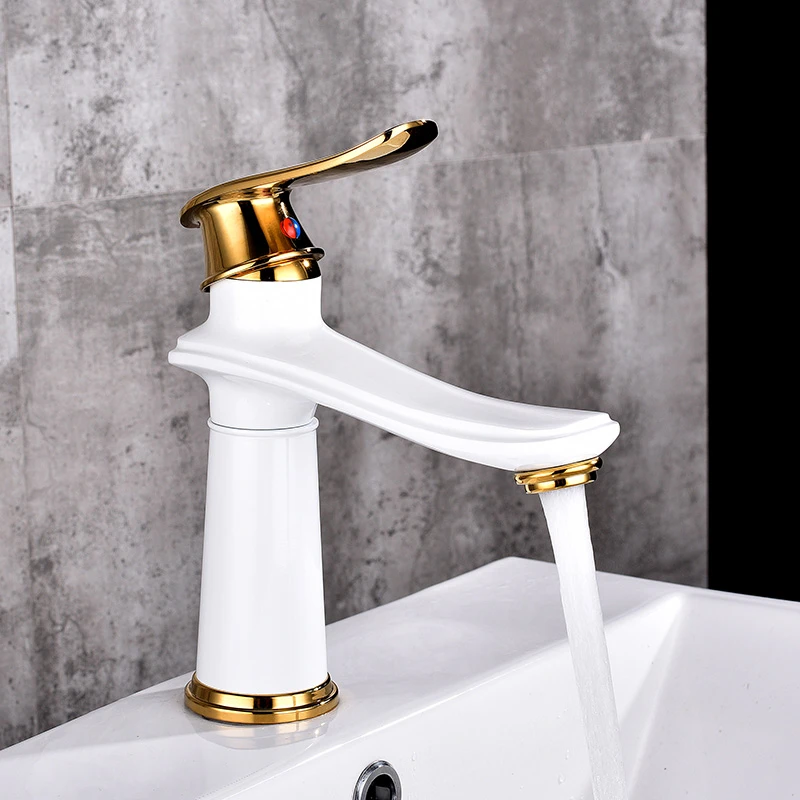 Basin Faucet Water Tap Bathroom Faucet Brass Made White Gold Black Finish Single Handle Hot Cold Water Sink Tap Mixer Basin Faucets Aliexpress
