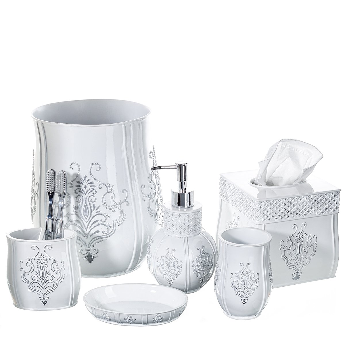 Toothbrush Holder 4 Piece Bathroom Accessories Set Tumbler Soap Dish Bathroom Set Features French Fleur De Lis Motifs Vintage White Bathroom Accessories Soap Dispenser Bath Gift Set Creative Scents Bath Vw Bathroom Accessory Sets