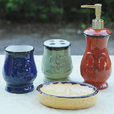 Tuscany Fleur De Lis 4 Piece Bathroom Accessories Set Amazon In Home Kitchen