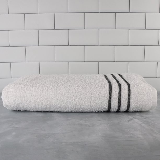 Mainstays Basic Bath Collection Single Bath Towel White With Grey Stripe Walmart Com Walmart Com