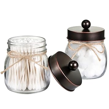 Mason Jar Bathroom Storage Organizer Oil Rubbed Bronze Rustic Farmhouse Decor Bathroom Accessories Qtip Holder Dispenser Glass Apothecary Jars For Qtips Cotton Swabs Ball Flossers 2 Pack Amazon In Home Kitchen