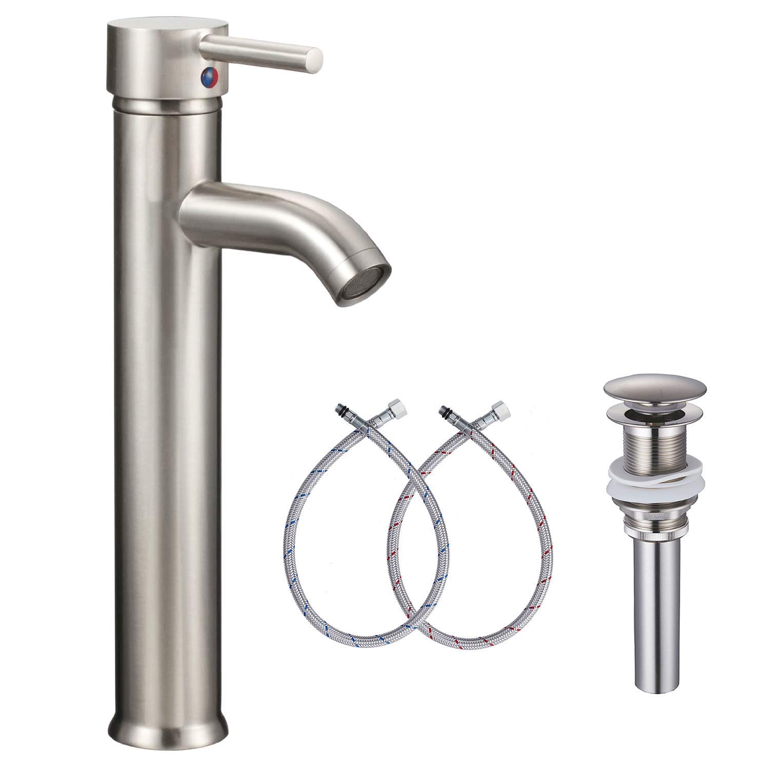 Buy Bathroom Faucet Brushed Nickel Single Handle One Hole Tall Body Bathroom Vessel Sink Faucet Bathroom Vanity Faucet With Drain Assembly Online At Low Prices In India Amazon In