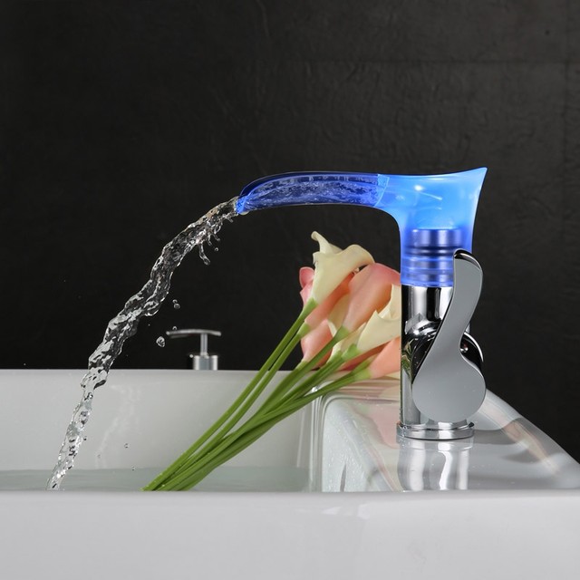 Modern Single Hole Single Handle Waterfall Bathroom Sink Faucet With Led Lights Modern Bathroom Other By Homary Limited Houzz