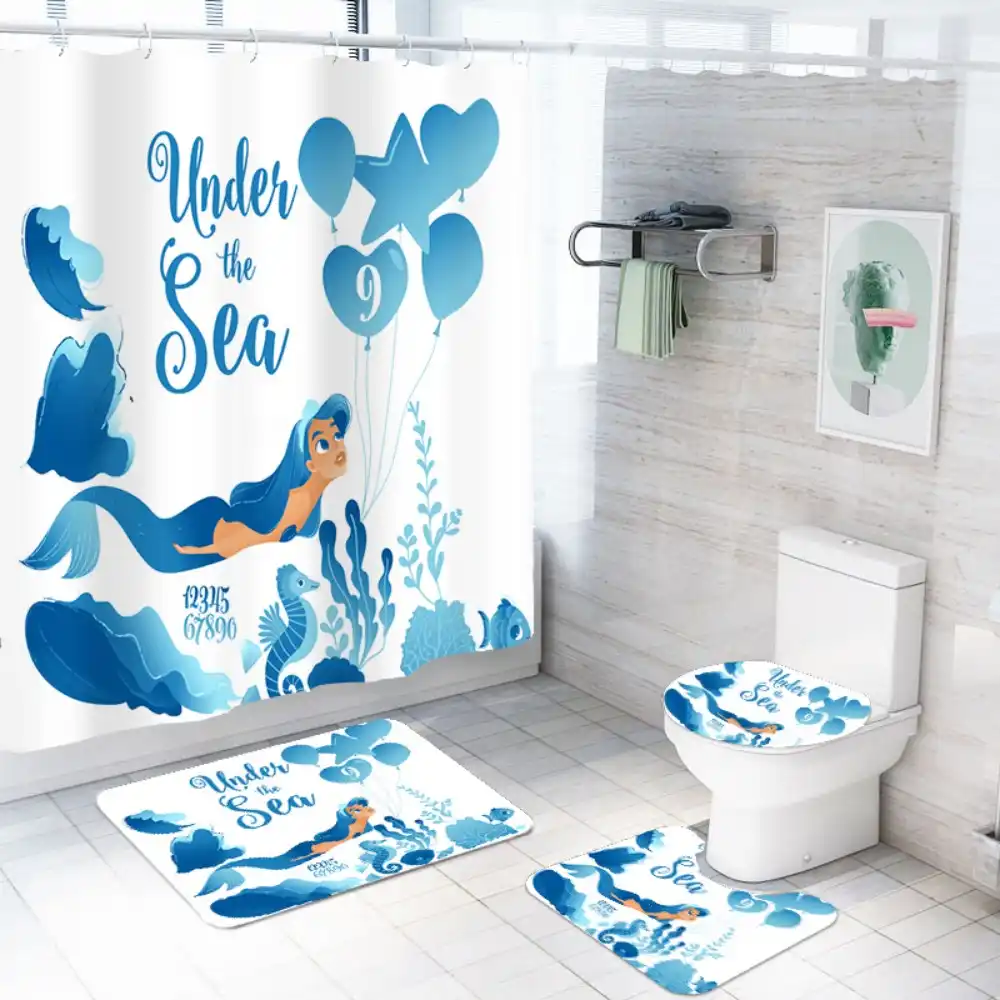 4 Pieces Mermaid Bath Set Bathroom Anti Slip Rug Floor Mat Waterproof Shower Curtain Under The Sea White Background Bath Decor Bathroom Accessories Sets Aliexpress