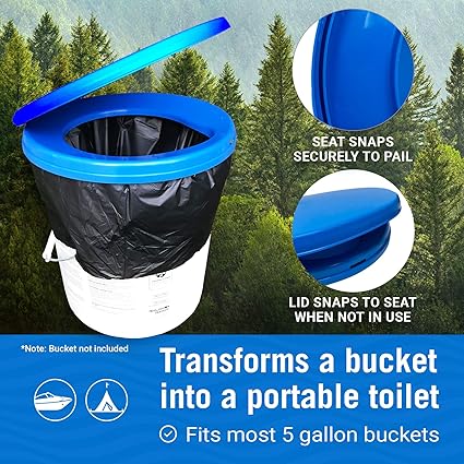 Amazon Com Camco Toilet Seat With Lid With Leak Proof Waste Bags Transforms Standard 5 Gal Buckets Into A Portable Toilet Great For Camping Hiking And Hunting And More 41546 Sports Outdoors