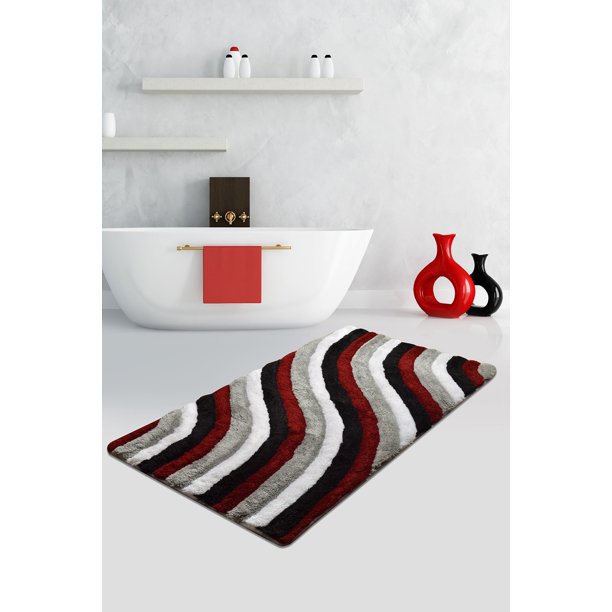 Antibacterial Rectangle Non Slip Bath Rug Wavy Pattern Red Gray Black White Colors Assorted Sizes Walmart Com Walmart Com
