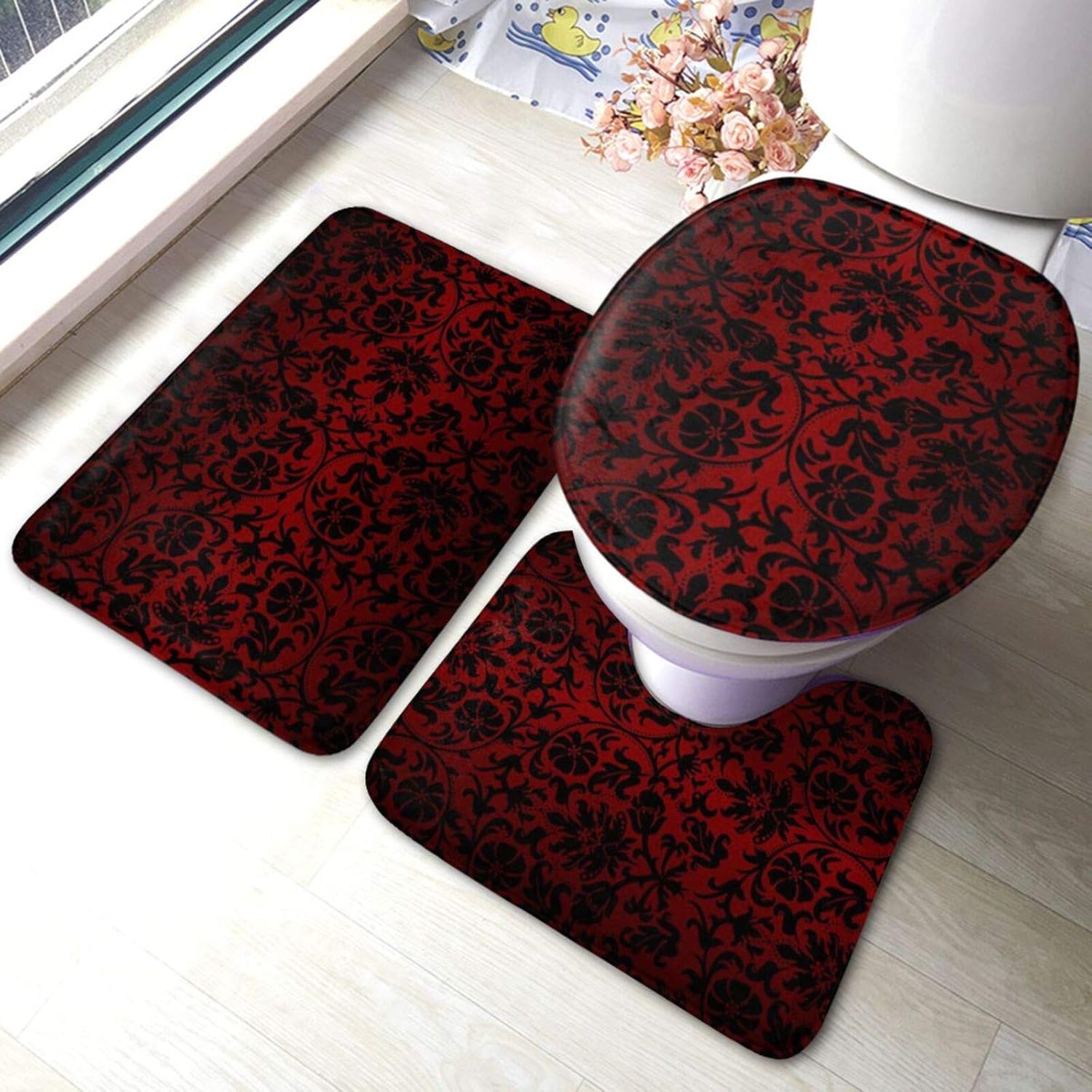 Amazon Com Laladecor 3 Piece Bathroom Rug Set Bath Rug Contour Mat Lid Cover Chrysanthemum Flower Red Black White Soft Bath Mats Set Bath Mats For Tub Shower Bathroom Home Kitchen