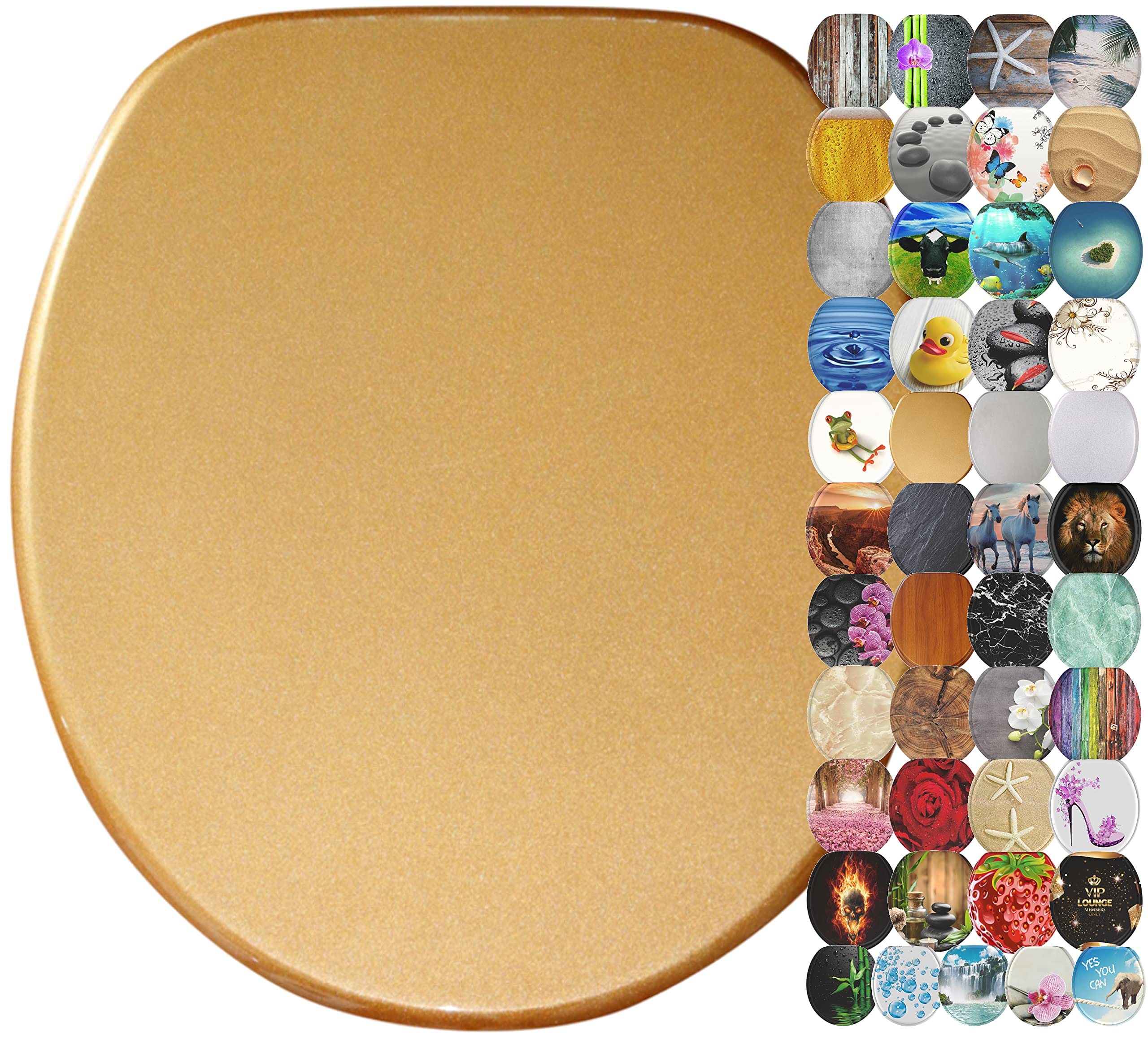 Sanilo Round Toilet Seat Wide Choice Of Slow Close Toilet Seats Molded Wood Strong Hinges Glittering Gold Buy Online In India At Desertcart In Productid 92572595