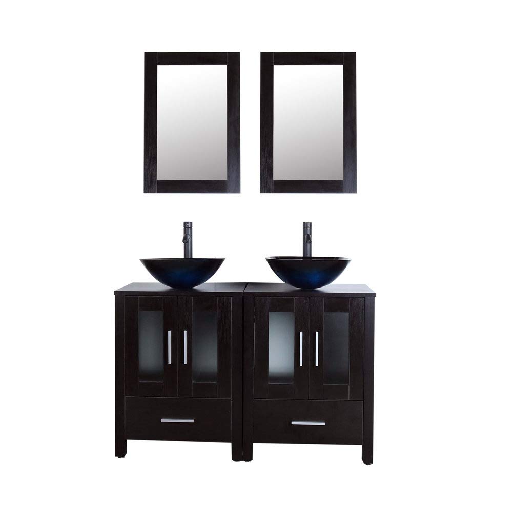 48 Black Bathroom Vanity Cabinet Double Sink Combo W Mirror Faucet And Drain Glass Sink Amazon In Home Kitchen