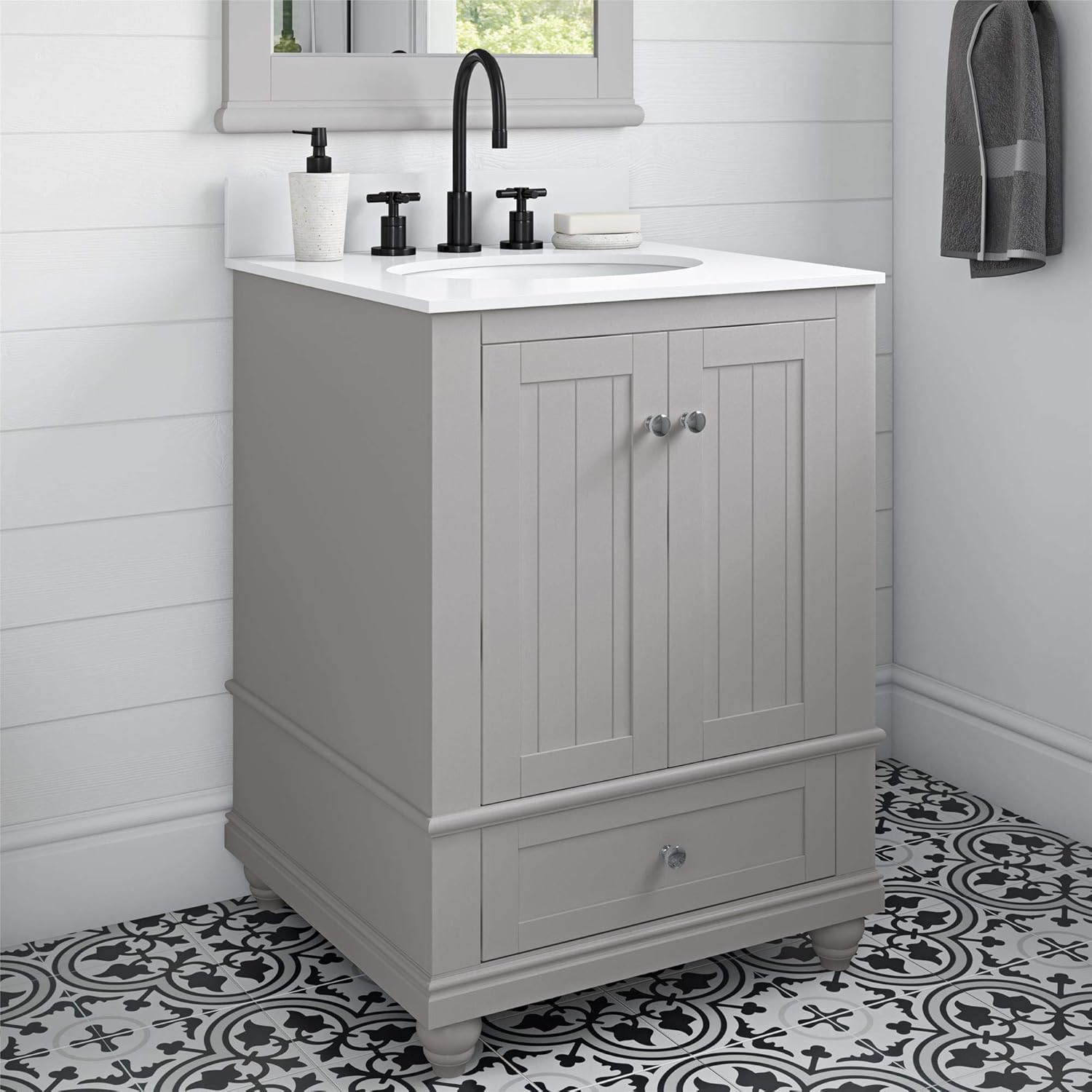 24 Inch Traditional Bathroom Vanity Gray Finish