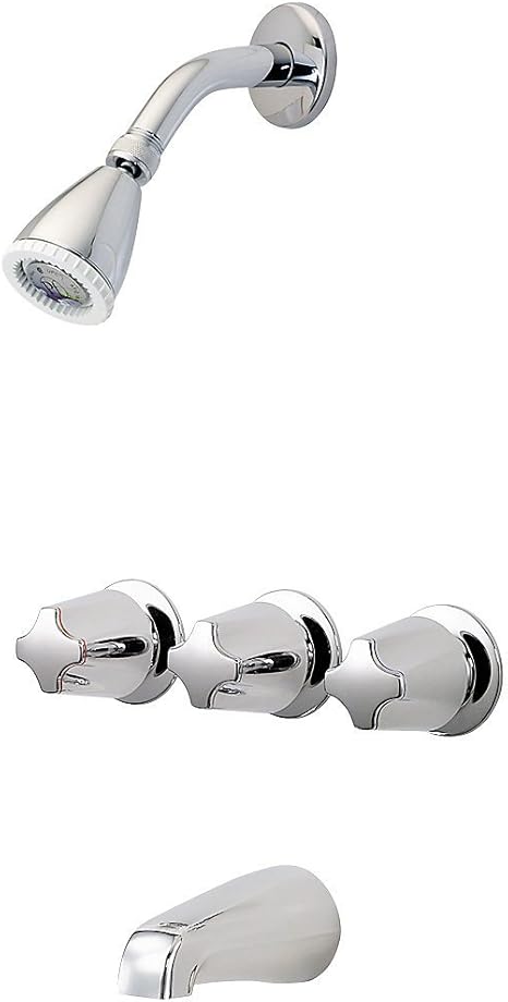 Pfister 3 Handle Tub Shower Faucet With Metal Verve Knob Handles In Polished Chrome Amazon In Home Improvement