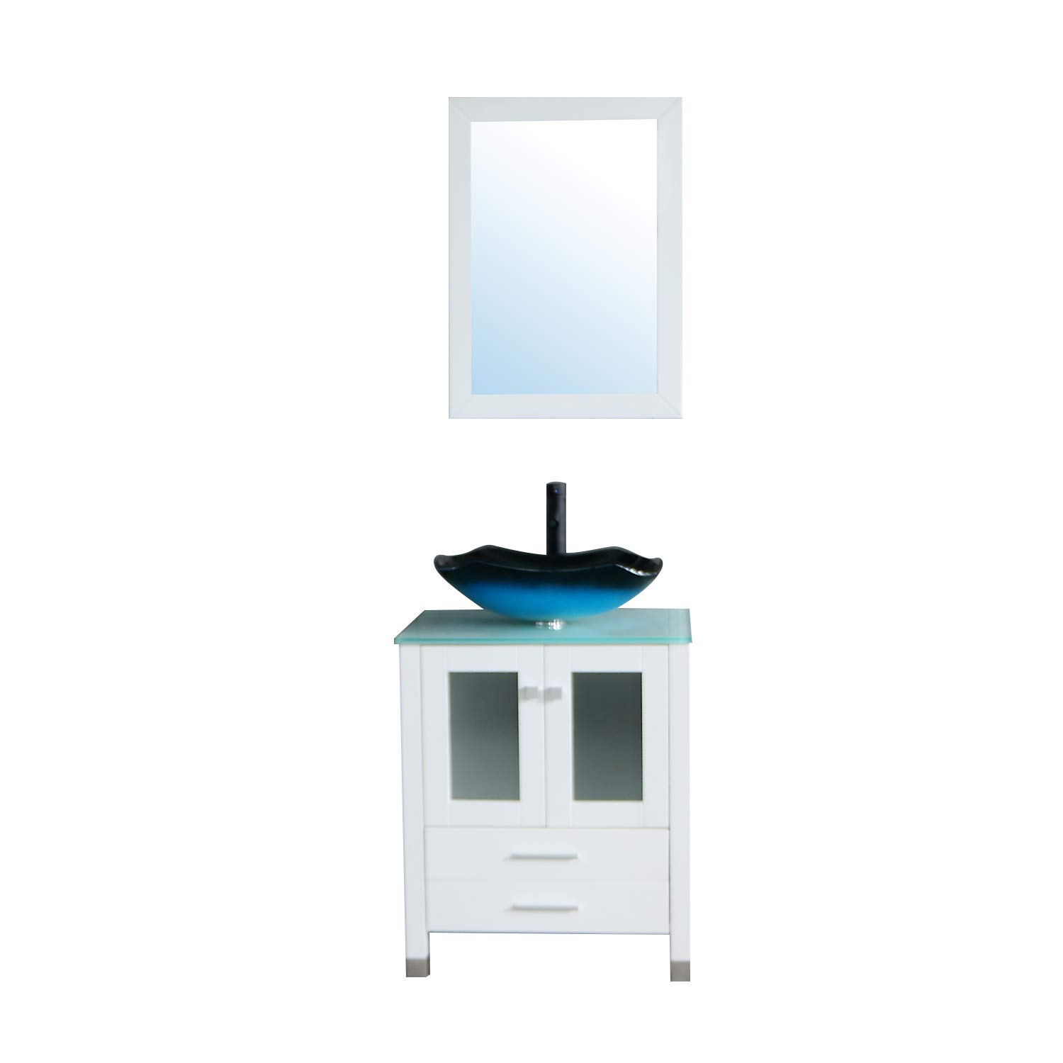 Sliverylake 24 Bathroom Vanity And Sink Combo Tempered Glass Vessel Countertop Sink Bowl W Mirror Set Bathroom Sink Cabinet Vanities For Bathrooms Blue Oval 1 Amazon In Furniture