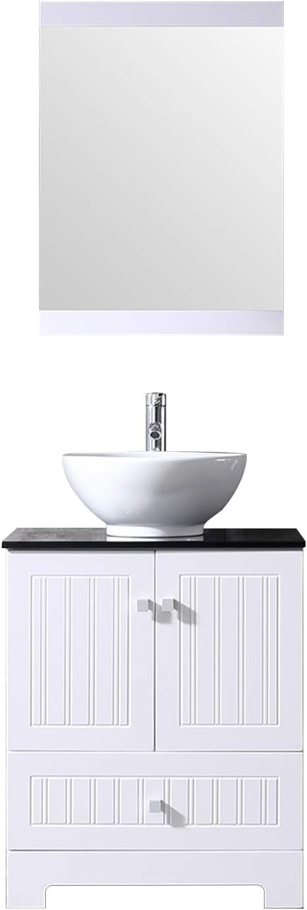 Sliverylake 24 Bathroom Vanity Ceramic Vessel Sink Combo Pvc Cabinet Black Countertop Sink Bowl W Mirror Set White Bowl Amazon In Home Kitchen