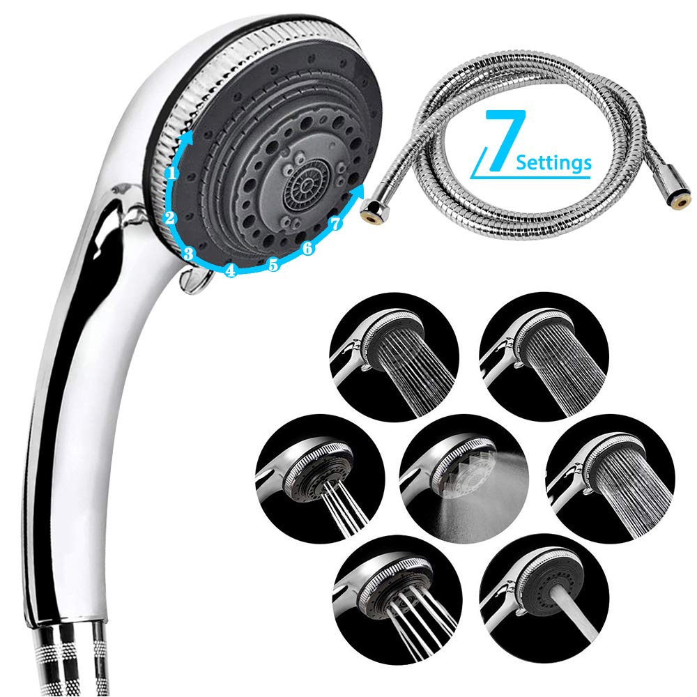 Handheld Shower Head With Hose Set High Pressure Large Size Shower Head 5 9 Inch In Diameter 7 Powerful Spray Settings Universal Showerhead For Bathroom Massage Spa Amazon In Home Improvement