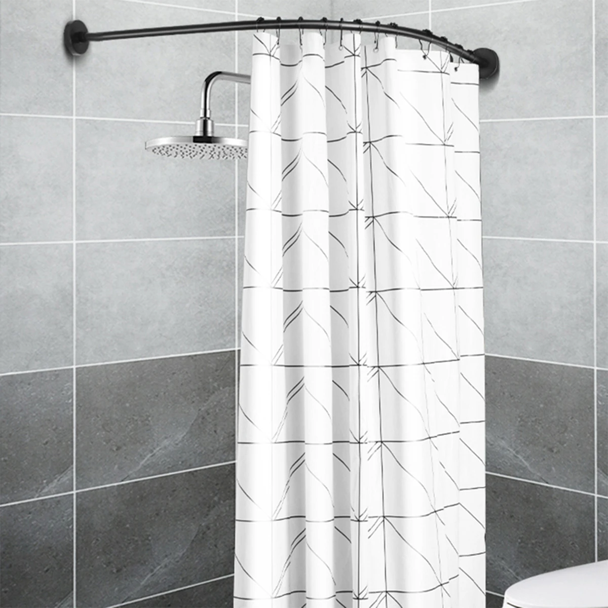 Curtain Rod Free Punching Shower Curtain Curved Corner Telescopi Curved Bathroom Hanging Curtain Thick Waterproof Shower Curtain Poles Aliexpress