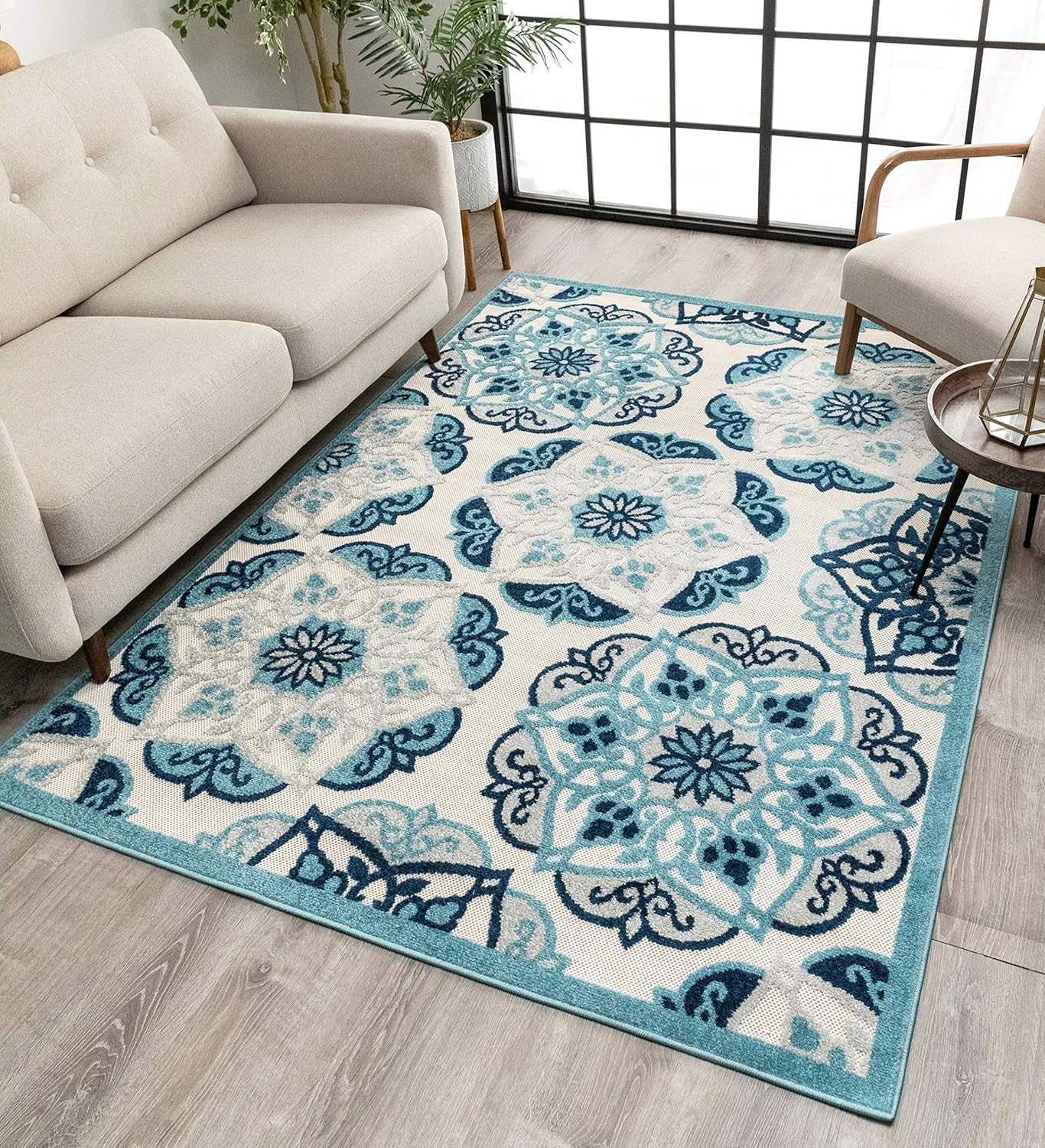 Amazon Com Well Woven Francesca Blue Indoor Outdoor Medallion Floral Pattern Area Rug 8x10 7 10 X 9 10 Home Kitchen
