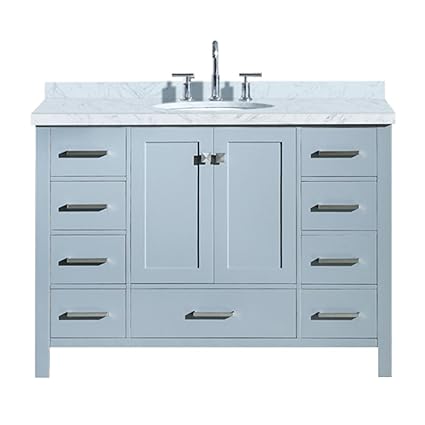Ariel Cambridge A049s Vo Gry 49 Inch Single Oval Sink Solid Wood Grey Bathroom Vanity With 1 5 Inch Edge White Carrara Marble Countertop Amazon In Home Kitchen