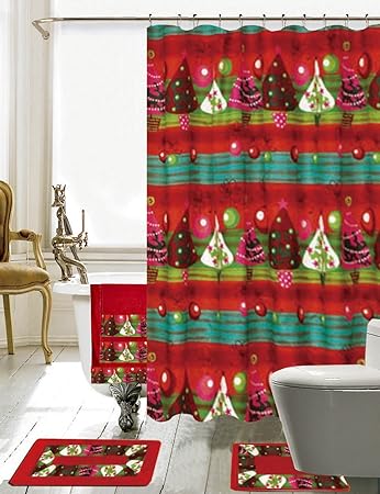 Season S Greetings 18 Piece Embroidery Bath Set 1 Bath Mat 1 Contour Mat 1 Shower Curtain 12 Matching Roller Shower Hooks 3 Piece Matching Towel Seat Small To Large 18 Piece Christmas Tree Amazon In Home Kitchen