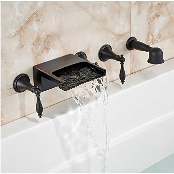 Amazon Com Gowe Oil Rubbed Bronze Wallfall Bathtub Faucet 3 Handles Wall Mount Shower Mixer Tap With Hand Sprayer Tools Home Improvement