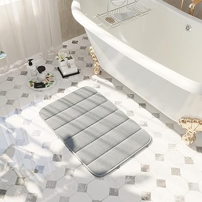 Amazon Com Yimobra Memory Foam Bath Mat Large Size 31 5 By 19 8 Inches Soft And Comfortable Super Water Absorption Non Slip Thick Machine Wash Easier To Dry For Bathroom Floor Rug Gray Home