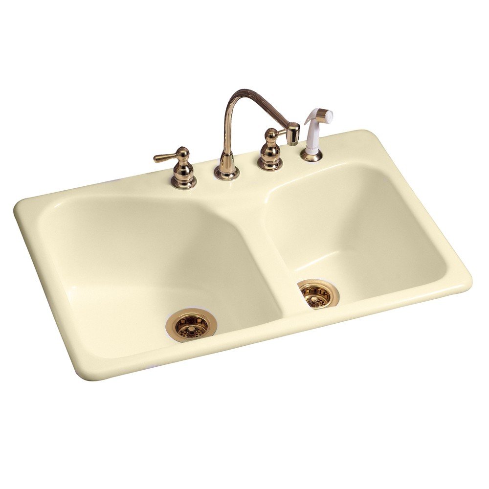American Standard 7045 804 345 Cast Iron Double Bowl Kitchen Sink Offset Bisque Amazon In Home Improvement