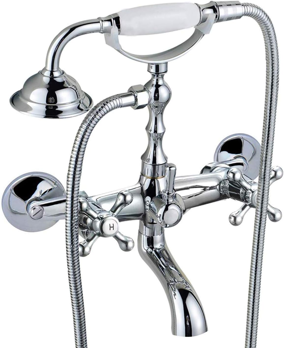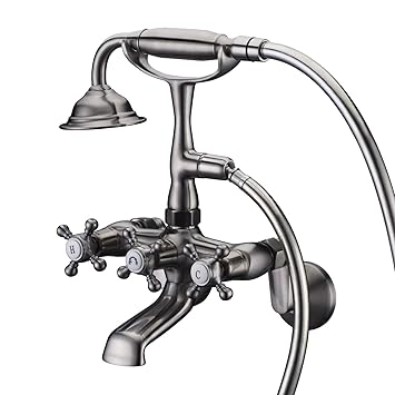 Buy Polish Chrome Clawfoot Tub Faucet Wall Mount Hand Held Shower Bathtub Faucet Set Double Level Handle With 6 Inch Center With Adapter Adjustable Swing Arms Online In Indonesia B088jzl6f6