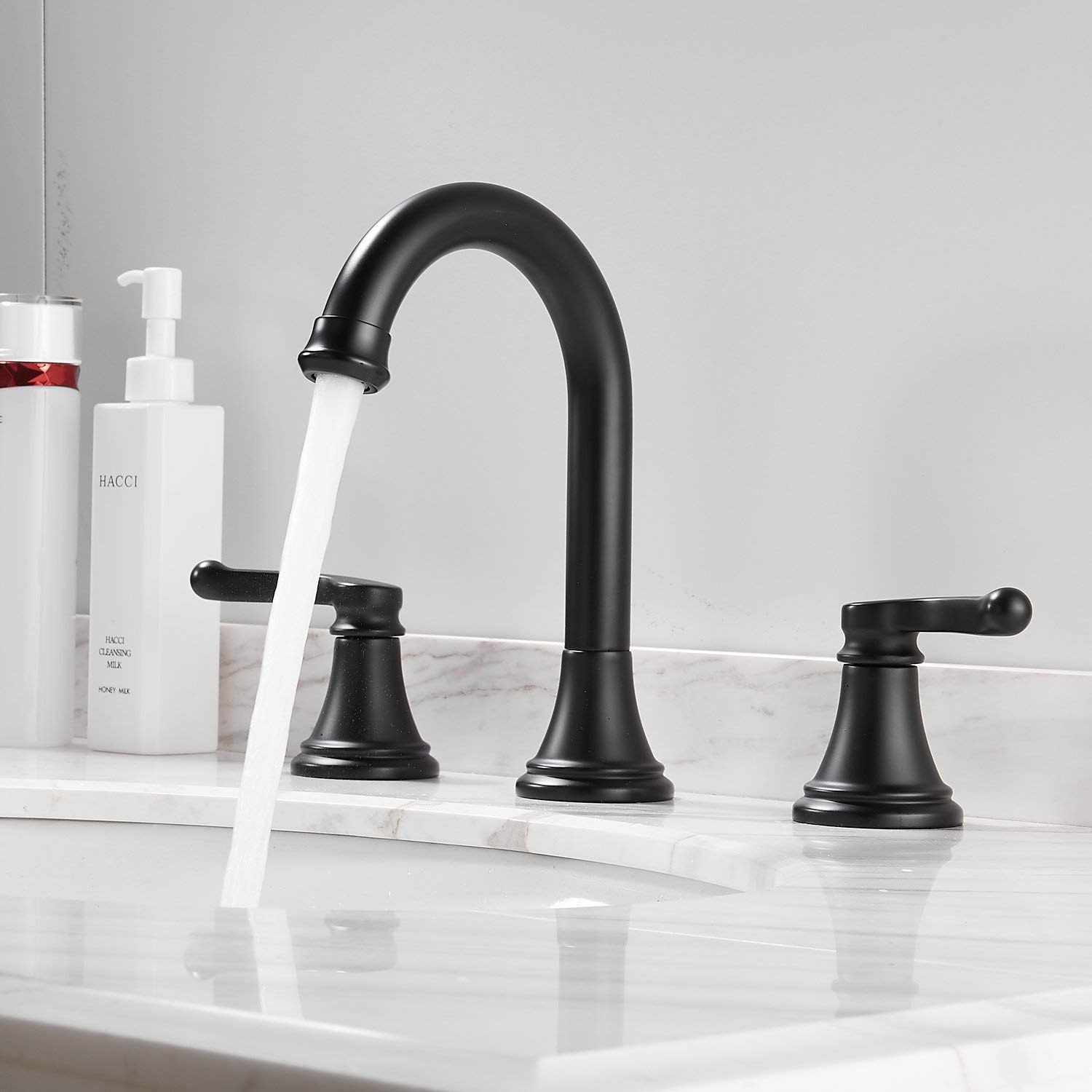 Matte Black Bathroom Sink Faucet 3 Hole 2 Handle Widespread Bathroom Faucet Amazon In Home Improvement