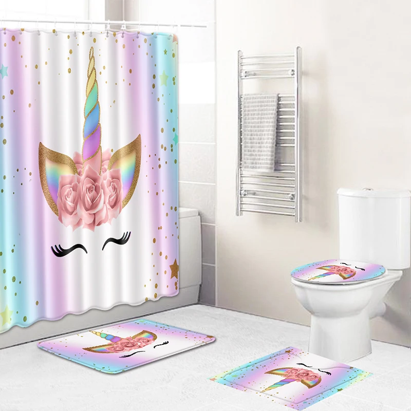 Wernnsai Rainbow Unicorn Bathroom Sets With Shower Curtain Rugs Mats Non Slip Waterproof Bathroom Decorations Accessory Sets 4 Pcs With Rugs Toilet Lid Cover Bath Mat For Kids Girls Amazon In Home